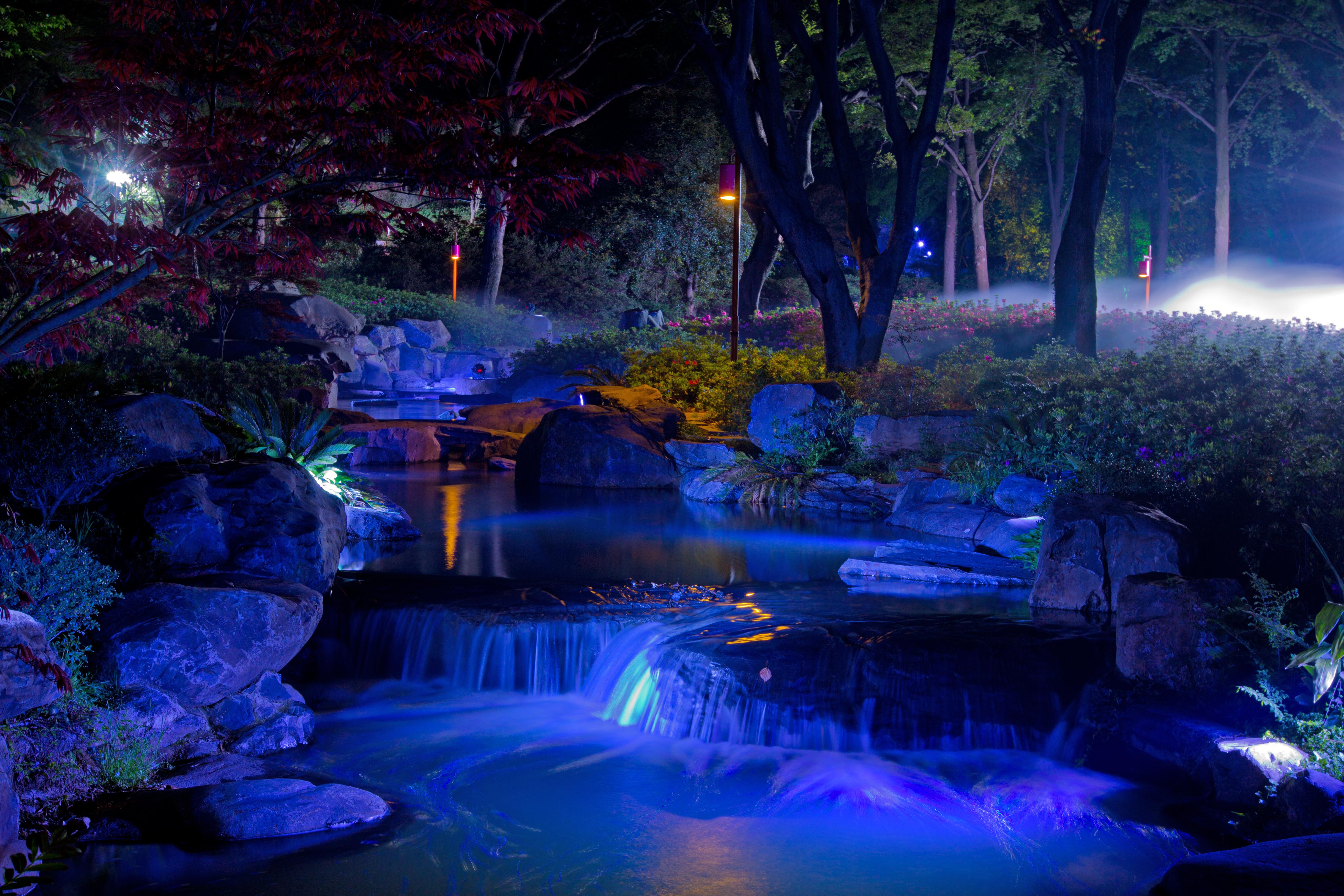 雾森溪流,雾里看花绝佳之处,整个溪流自山间顺沿高低地势流至杜鹃园湖畔,为杜鹃花创造了绝佳的生长环境,更用溪水、水雾、杜鹃等元素营造出了“听声方知有溪水,雾里更见杜鹃红”的园林意境。像“雾森溪流”的景观特点,更不是一般地方有的。