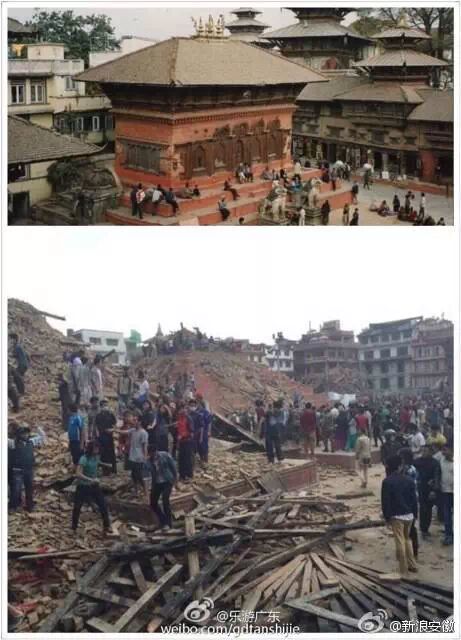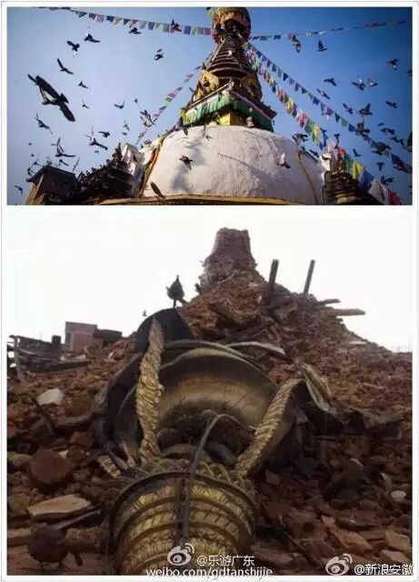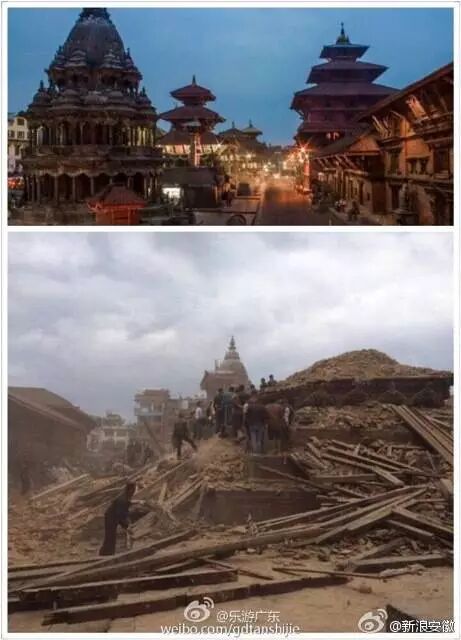 那些前几日还美得不可方物的景色,却在那一瞬间被摧成废墟,下面这些对比图,让人看了不禁心疼的落泪,惟愿天佑尼泊尔,祈福。