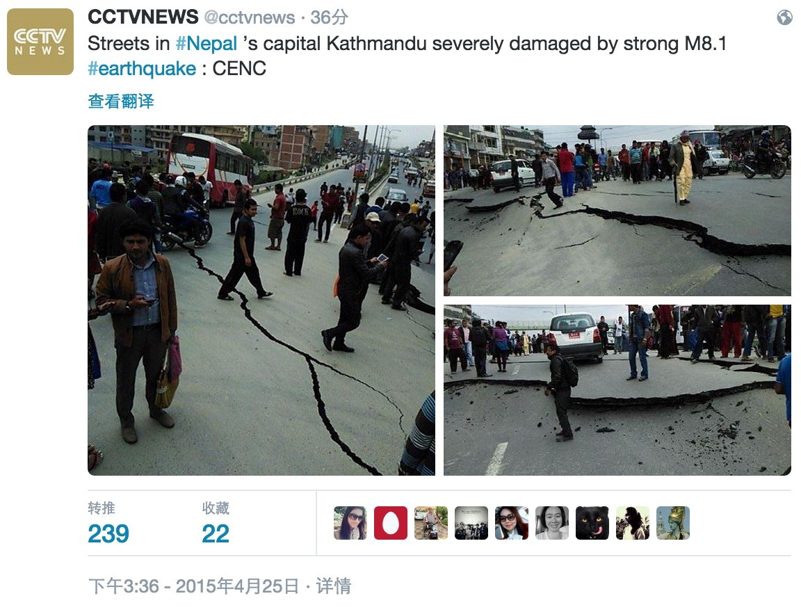 ▲地震后数以万计的人深陷恐惧(图据央视新闻Twitter)