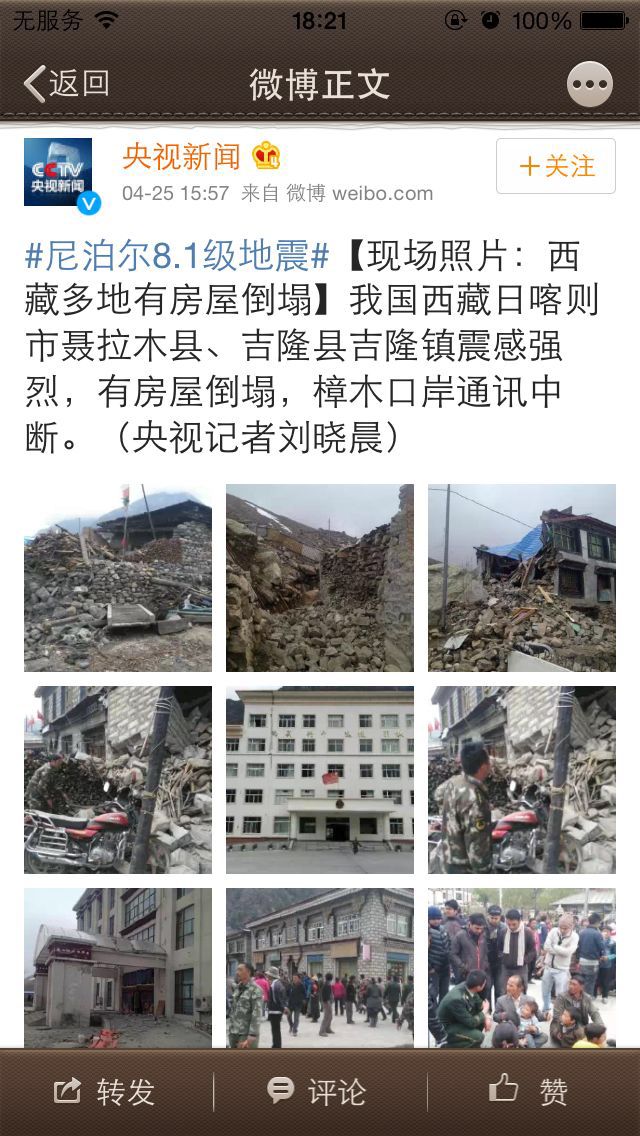 “5.12”汶川地震、“4.20”芦山地震、“4.14”玉树地震......曾经我们也遭受过这样的伤害,在自然灾害面前,人类是脆弱的,愿尼泊尔安好,愿西藏安好,愿每一个人安好!