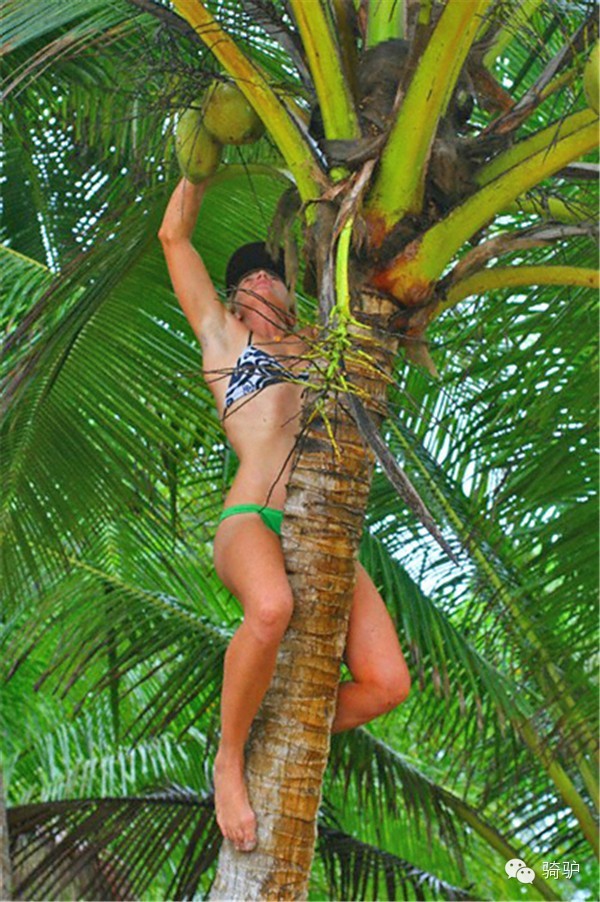 有时像一只母猴子一样爬上大树,享受一个最纯天然的椰子