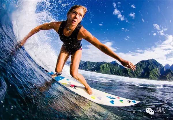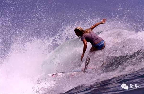 她能踩着冲浪板,像鱼儿一样自由在海浪间起伏